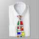 Cette cravate a une conception Bauhaus d'une grille avec carrés et rectangles en rouge, vert, bleu, orange, bleu clair, jaune et rouge.