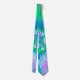 Cravate Hibiscus psychédélique rétro vert et rose chaud