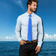 Cette cravate graphique à cheval de mer présente un micro-motif à deux tons de bleu. Imprimé sur les deux côtés, il est un accessoire élégant pour les amoureux de la mer, ajoutant une touche marine subtile à des tenues officielles ou décontractées.