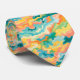 Une cravate élégante présentant une impression colorée évoquant une impression d'aquarelle.