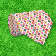 Ajoutez un peu de joie à votre tenue de Noël avec cette cravate à motifs avec un simple motif géométrique dans une palette de couleurs rétro des années 1970, rouge, vert citron, orange, rose et vert contre un arrière - plan blanc. L'envers dispose d'un motif à rayures en diagonale.