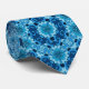 Cravate dans un motif en tuiles florales d'inspiration chinoise dans les tons clairs et bleu indigo foncé