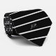 Une cravate intemporelle pour les amateurs de rayures, avec un motif de rayures horizontales blanches bordé de noir sur un arrière - plan noir. J'ai ajouté les initiales JP pour vous donner une idée de comment vous pouvez personnaliser la cravate pour convenir au destinataire, si c'est pour un cadeau. Vous pouvez changer radicalement l'apparence en modifiant l'arrière - plan de couleur. Utilisez le bouton personnaliser pour convenir à votre style.