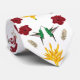 Design exotique avec colibris verts, hibiscus rouge, fleurs jaunes, dessin de plumes dorées et couleur arrière - plan personnalisée.