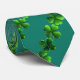 Cravate de la Saint Patrick en bleu turquoise et vert. Quatre trèfles de feuilles font des rayures diagonales sur cette cravate qui est parfaite pour porter au bureau en mars.