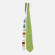 Cette cravate a un design art déco de lignes en vert, jaune, marron, orange et bleu.