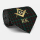 Carré or élégant et boussole Symbole maçonnique cravate personnalisée avec un arrière - plan plaid foncé.
