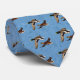 Les canards colverts mâles et femelles volent au-dessus d'un étang doré, l'eau ondulant pour refléter les couleurs du feuillage d'automne arrière - plan qui brille au soleil. Accentué par un arrière - plan à motifs bleu clair.