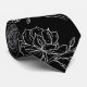 Une cravate de mariage noire et blanche moderne présentant un fond noir uni avec un contour blanc de fleurs de magnolia en fleurs, de tiges et de bourgeons.