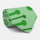 Cette cravate présente un design moderne du milieu du siècle avec des lignes avec des cercles au bout dans les tons verts pour la Saint Patrick’s Day.
