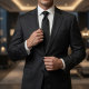 Cravate Minimalist Carbon Black Micro-Grid Geometric