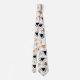 This unique tie has a pattern of modern heart images in tones of gold, gold brown, and black. The pattern is printed on a white background. Perfect for Valentine's Day, but attractive for all year long.
