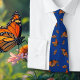 Cravate motif papillon. De jolis papillons monarques orange recouvrent ce cravate bleu marine sombre.