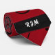 Parlez d'une cravate électrique ! Rich rouge avec des tourbillons en feuilles noires dans un motif damassé inhabituel sont jumelés avec son monogramme en blanc pour un look élégant à ces réunions et rassemblements d'entreprise.