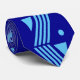 Un cravate avec un motif art déco, avec un arrière - plan bleu foncé (00008b). Alma Wad a conçu un motif unique pour une cravate qui comprend des zigzags, des triangles et des points de couleur bleu ciel.