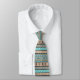 Cette cravate élégante est ornée d'une pêche et d'un modèle tribal turquoise.