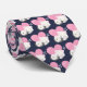 Une cravate avec une adorable illustration graphique. Un chaton blanc avec une jolie image empreinte de patte sur sa fourrure. Dormir tranquillement. Un grand coeur rose derrière elle et quelques petites étoiles aussi. Arrière - plan bleu foncé.