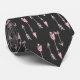 Belle cravate avec un motif étonnant représentant des éléments de voyage dans les tons rose pastel, blanc et noir