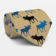 Des images de silhouette d'orignal en noir, bleu foncé et bleu moyen traversent cette cravate masculine unique. Les images sont placées sur un arrière - plan en or clair.