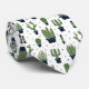 Une cravate à la saveur occidentale rustique. Conçu avec un tas de cactus verts mignons dans un motif extensible. Plus précisément, des cactus épineux de couleur verte, de toutes sortes de formes et de tailles, chacun assis dans son propre pot de fleurs bleu foncé. Des petits triangles décoratifs entre eux. Illustration de fantaisie.
