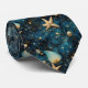 Un cravate avec un élégant motif bleu avec étoiles de mer, représentant l'océan.