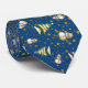 Christmas tie with sand snowmen and holiday trees pattern. Navy blue color with off white, green and gold specks (which are part of the design).