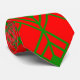 Cette cravate a un design art déco de formes diamant, et des lignes en vert sur un champ de rouge.