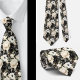 Une cravate à motif floral aquarelle noir et blanc présente un design élégant et sophistiqué avec des fleurs de formes et de tailles variées, contrastant avec un fond noir ou blanc. Les motifs floraux sont complexes, avec des pétales, des feuilles et des tiges rendus avec des lignes nettes et des ombrages. Le design varie des fleurs audacieuses et grandes aux fleurs délicates et plus petites, créant un look équilibré et dynamique.