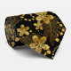 Cravate Noir et or feuilles tropicaux et fleurs motif