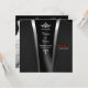 Célébrez votre journée spéciale dans l'élégance intemporelle avec ce Modèle Faire-part de mariage Diamond Cravate Noire. L'avant est doté d'un graphisme de smoking sophistiqué, avec une conception détaillée de vestes à quatre poches, y compris une poche de poitrine et des poches avant inférieures, donnant une sensation de cravate noire luxueuse. Un titre de destination et un espace réservé de date sont inclus pour une personnalisation facile. Le dos met en valeur une robe à bille en corset perlée de cristal contre un arrière - plan en Demask noir, avec votre invitation élégamment encadrée par des accents de fleur de lis au-dessus et au-dessous. Parfait pour les couples à la recherche d'un design haut de gamme personnalisable qui respire le glamour classique et le raffinement formel.