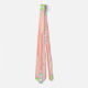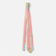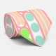 Cette cravate a un design fait de longs ovales remplis de cercles, de formes diamantées, ou de lignes en rose, corail, vert et bleu.