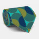 Cette cravate a un design moderne du milieu du siècle des ovales en turquoise avec des demi-cercles en vert et marine à l'intérieur sur un champ de turquoise.