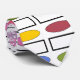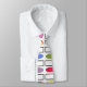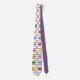 This necktie has a mid-century modern design of repeating rectangles and ovals in flower garden colors.
