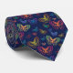un design motif coloré avec de nombreux papillons de différentes couleurs sur une cravate bleue.