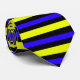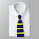 Cette cravate est recouverte d'un motif rayé cool bleu et jaune.