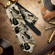 Tous les membres du groupe sont venus jouer sur ce design musical amusant qui présente une variété d'instruments sur une feuille de musique vintage, collage arrière - plan. La palette de couleurs noir et or tendance fait un cravate accrocheur. Les instruments présentés sont : guitare acoustique et électrique, saxophone, clarinette, trombone, trompette, corne française, flûte, violon, violoncelle et batterie. Recherchez ID481 pour voir d'autres choix de couleurs et produits avec ce motif.