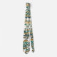 Patterned tropical leaves with teal and gold brush paint strokes neck tie. It showcases patterned tropical leaves with brush strokes in teal blue and gold and confetti.