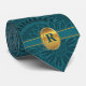 Cravate Peacock Monogrammé Turquoise avec Accents Or