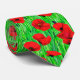 Cravate dans un motif d'aquarelle semi-abstrait de pavots rouges dans un champ, contre des tiges vertes et des feuilles