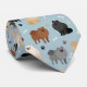 De mignons chiens de Poméranie en noir, gris, crème, chocolat et manteaux rouges s'assoient et se tiennent avec des os de chien éparpillés et des empreintes de pattes sur un arrière - plan bleu clair.
