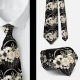 Une cravate à motif floral aquarelle noir et blanc présente un design élégant et sophistiqué avec des fleurs de formes et de tailles variées, contrastant sur un fond noir ou blanc. Les motifs floraux sont complexes, les pétales, les feuilles et les tiges étant rendus avec des lignes nettes et des ombrages. Le design varie des fleurs audacieuses et grandes aux fleurs délicates et plus petites, créant un look équilibré et dynamique.