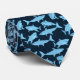 Pour tous les fans de requins, voici une cravate pour hommes présentée dans un motif requins bleu marine et bleu.