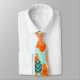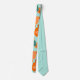 Cette cravate a un design scandinave de fleurs et de feuilles dans différentes nuances d'orange et turquoise.