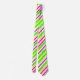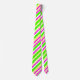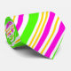 Cette cravate a des rayures vives de différentes largeurs (vert citron, magenta, jaune et blanc) disposées en motif diagonal.