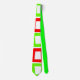 Cette cravate a un design moderne du milieu du siècle de rectangles torsadés répétitifs en rouge, orange, vert et turquoise.