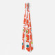 Cette cravate a un design de rectangles orange avec des cercles dans les différentes nuances de vert et de bleu.