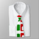 Cette cravate a un design moderne de Noël mi-siècle de rectangles orange répétitifs avec rectangles blancs à l'intérieur alternant avec rectangles turquoises.