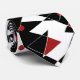 Différentes formes géométriques blanches et rouges sont disséminées sur un arrière - plan noir, créant un contraste saisissant. Certaines formes sont interconnectées à de fines lignes blanches, et des points rouges ajoutent une pop de couleur à la composition.