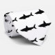 La silhouette d'un requin nageant aux motifs noir et blanc.