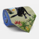 Le surf est bon, le soleil brille et un voilier se voit au loin. Un Retriever à revêtement plat se trouve sur cette belle plage entourée de fleurs luxuriantes et de palmiers et regarde les mouettes.